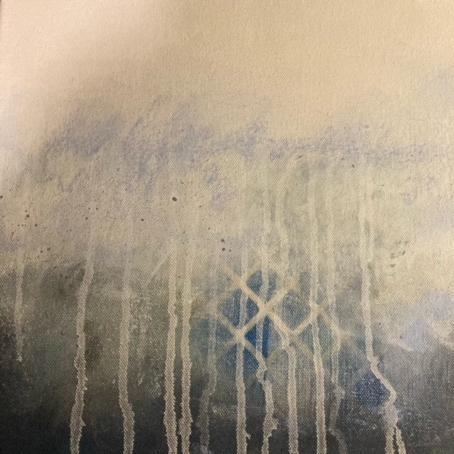 Subtle drips, feint geometry and translucent washes suggest both structure and dissolution - the fragile space between order and disappearance.
